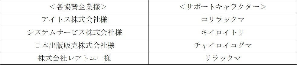 通常のルールに、リラックマならではの特別ルールを盛り込んだ「ごゆるり?!ver.」に加え、各キャラクターは、同大会での各賛同企業のサポートキャラクターとしても活躍し、全10都市終了後には、全国優勝グループも決定いたします。