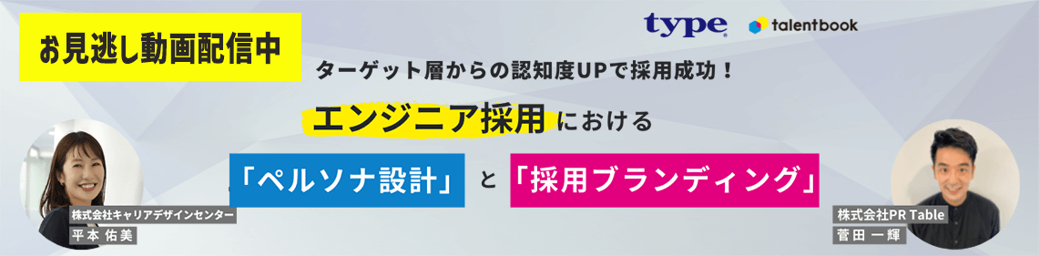 今回、広報・PR支援サービス「talentbook」を運営している株式会社PR Tableとキャリア転職サイト「type」を運営する株式会社キャリアデザインセンターが初の共同開催セミナーを実施しました。