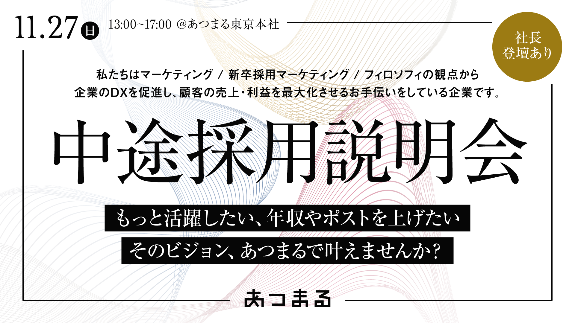 この機会に是非、あつまるの中途採用説明会にご参加ください。
