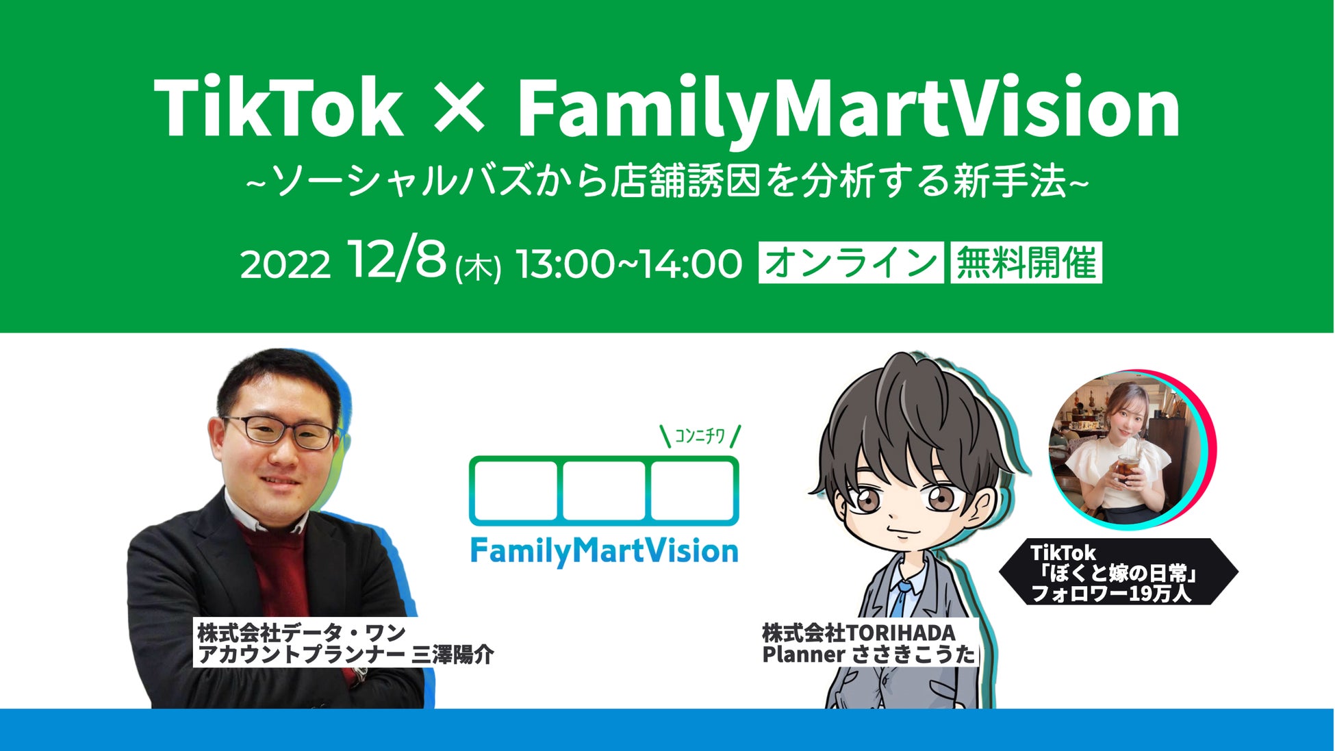 【データ・ワン×TORIHADA】ウェビナー「TikTok × FamilyMartVision ~ソーシャルバズから店舗誘因を分析する新手法~」を12月8日(木)13時より開催