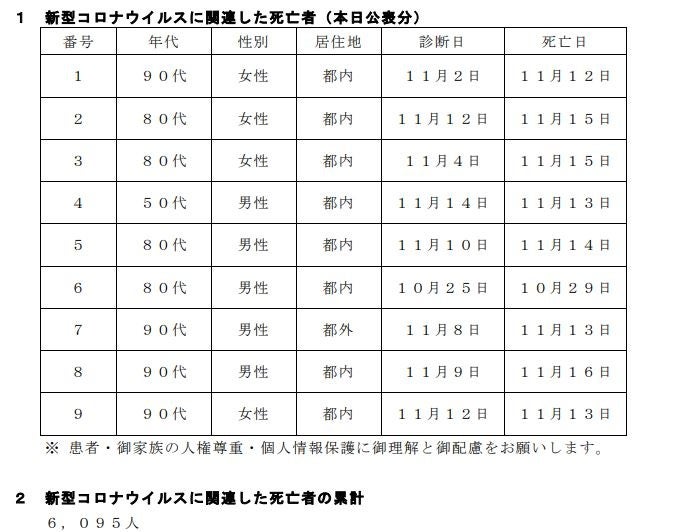 新型コロナウイルスに関連した患者の死亡について business Twitter Facebook はてブ Pocket LINE コピー 2022.11.18 この記事は約1分で読めます。 都内で新型コロナウイルスに感染した方が死亡されましたのでお知らせします。 お亡くなりになった方のご冥福をお祈り申し上げます。