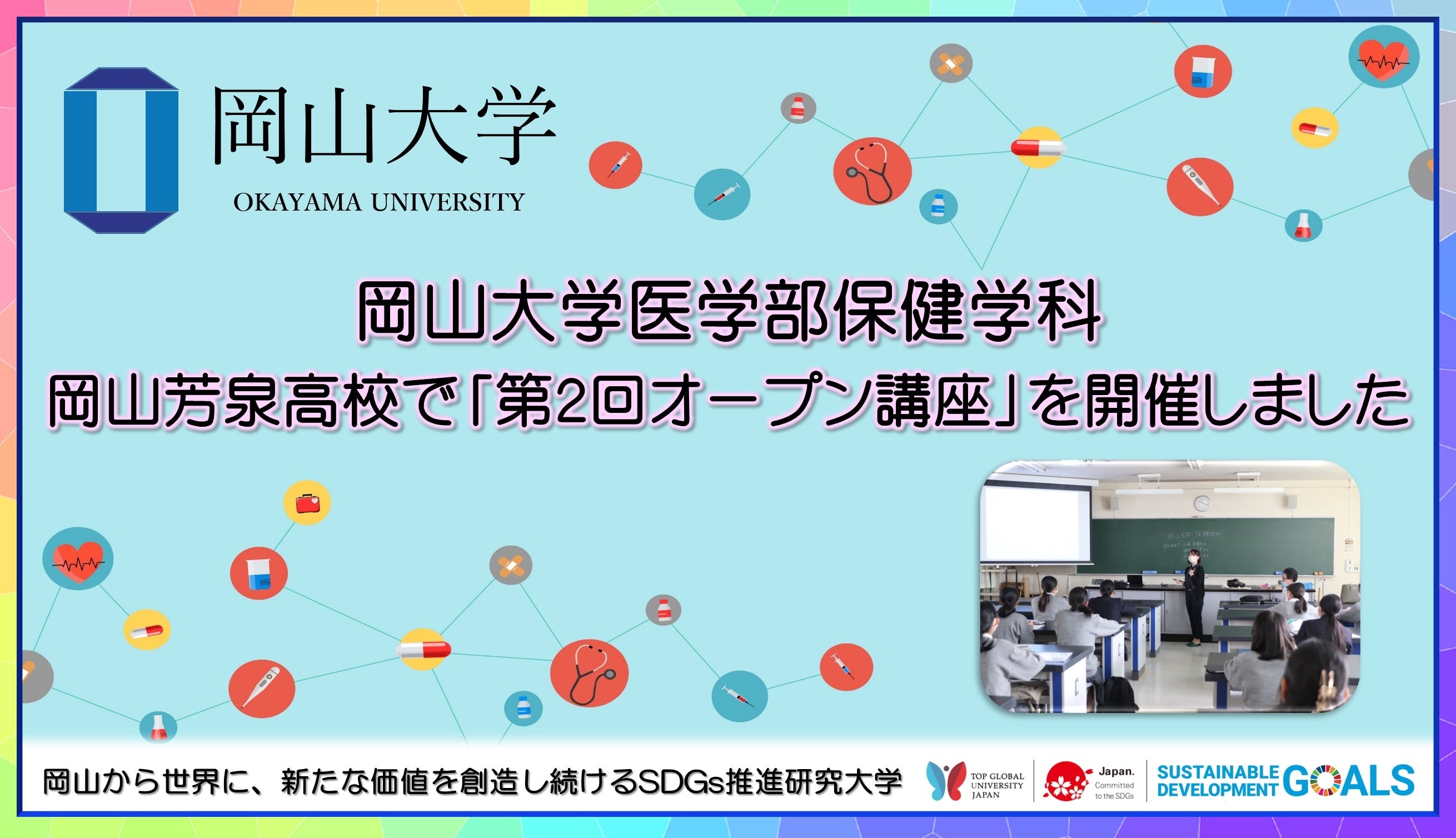 国立大学法人岡山大学(本部:岡山市北区津島中、学長:槇野博史)の医学部保健学科は、2022年10月22日(土)に岡山芳泉高校に訪問し、本年度第2回となるオープン講座(9:55~12:25)を実施しました。