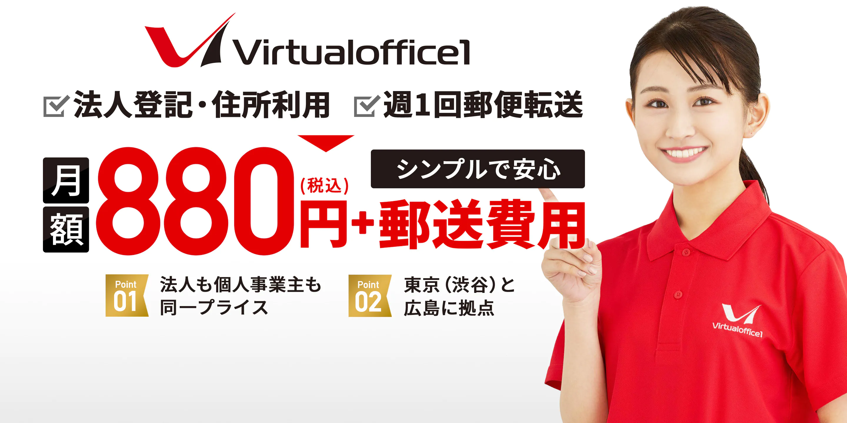 バーチャルオフィス1は、渋谷店は渋谷区道玄坂と、広島店は広島市中区大手町に拠点を構えるバーチャルオフィスです。