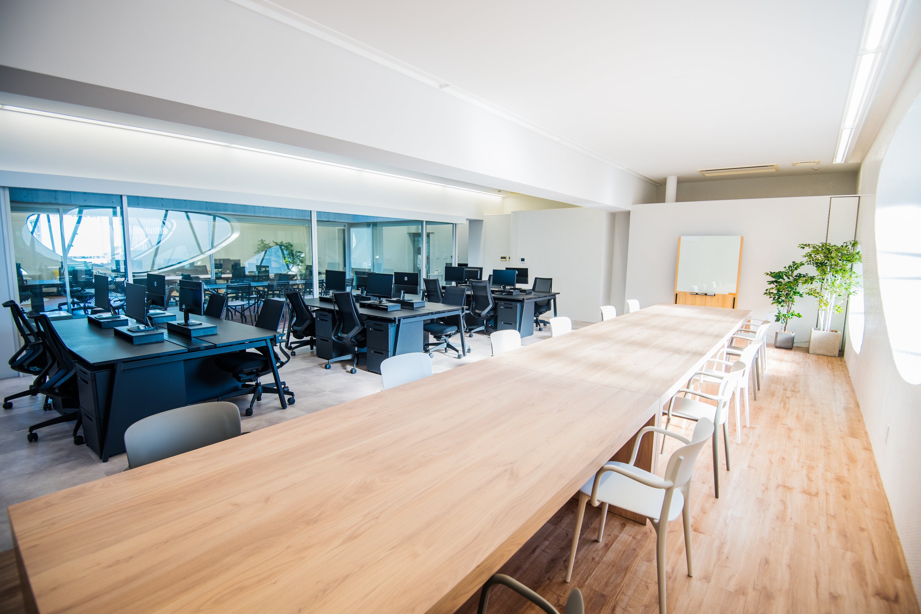 9階オフィスは作業スペースメインで構築。ソファ席や長机を取り入れることで、ひとり気分によって場所を変えながら黙々と働くことも、社員同志が活発に交流し合い、あたらしいアイデアを生み出すこともできる環境です。
