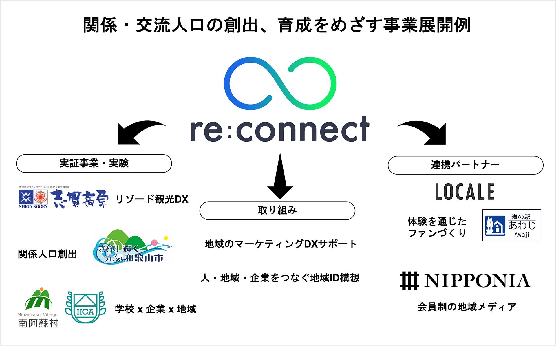 このたびは、当社の”地域のファンづくり”の事業を「re:connect」というブランド名称でくくり、みなさまに披露させてもらうことができ、嬉しく思っております。日本の多くの地域の課題である関係・交流人口を増やし、稼げる地域にしていくこと、その課題解決策に過去20年以上にわたって取り組んできたCRM=”企業のファンづくり”のノウハウを注ぎ込めればと思っています。今後もさまざまな関係・交流人口増加に寄与する地域課題解決のソリューションをre:connectブランドで展開し、事例と共に紹介していく所存です。どうぞご期待ください。