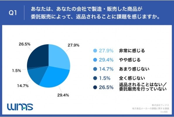 食品業界には「3分の1ルール」といって、賞味期限が一定程度確保された商品を店頭に並べるための慣習があります。逆を言えば、この期限に当てはまらない食品は行き場をなくし、返品・廃棄されます。また、店頭で売れ残った食品においてもメーカーに返品されますが、その頃には賞味期限が切迫しているため、二次流通業者へ流通させることも叶わず、廃棄している現状があります。都内のメーカーであれば、市場価格の2〜3割程度で関連会社に買い取ってもらうケースもありますが、地方メーカーともなれば、そのケースもほとんどないのが実態です。実際に、地方メーカーの経営者へアンケート(※)を実施したところ、約6割の地方メーカーが「自社商品の委託販売による返品」に課題を実感していることが判明し、その主な理由に「廃棄されフードロスにつながるから」が挙げられました。加えて、アンテナショップに委託販売をするメーカーの85.7%が「アンテナショップとの取引における返品」にも課題を実感する結果となりました。