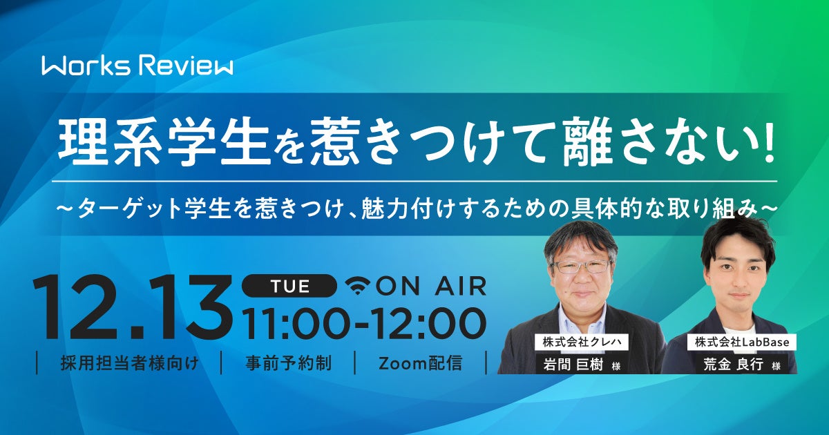 | セミナー名 | 理系学生を惹きつけて離さない!~ターゲット学生を惹きつけ、魅力付けするための具体的な取り組み~ |