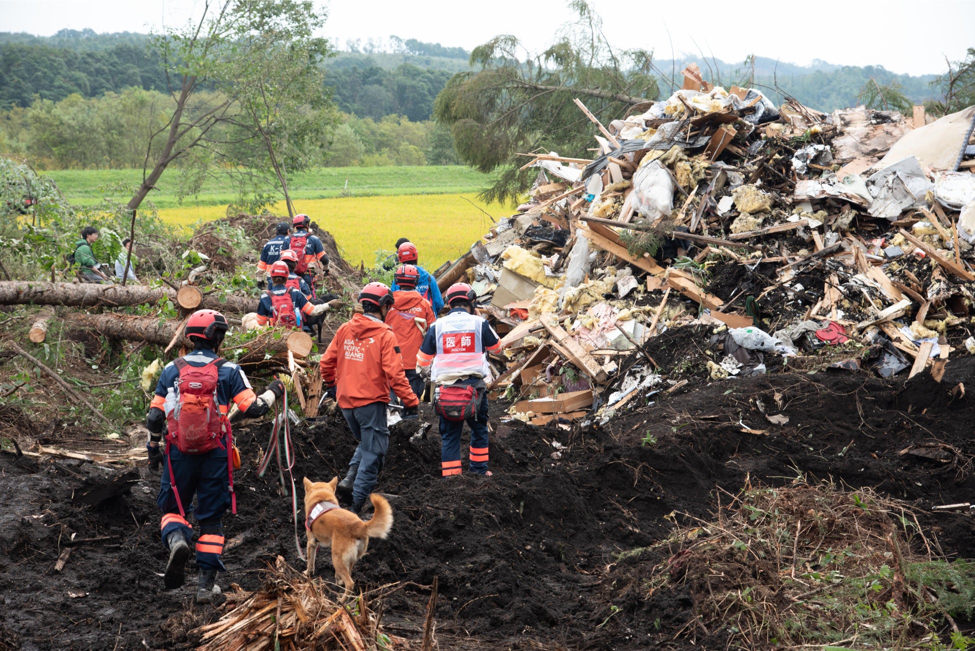 ピースウィンズ・ジャパンが運営する、医療を軸とした災害緊急支援プロジェクト「空飛ぶ捜索医療団”ARROWS”」には、発災直後に被災地に駆けつけ、行方不明者の捜索などを行う災害救助犬が所属しています。彼らはこれまで、北海道胆振東部地震や令和2年7月豪雨など、北海道から九州まで全国各地に出動してきました。