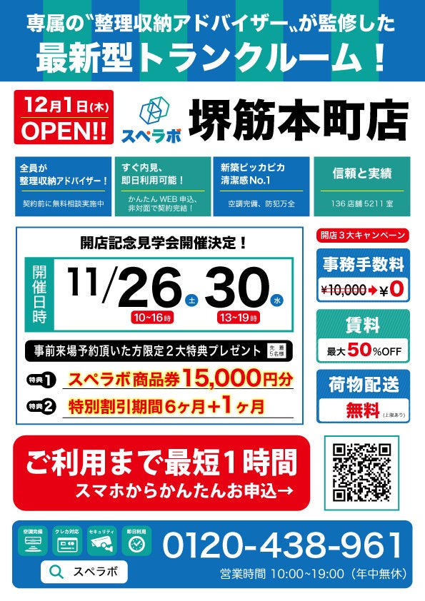 オープンに合わせ11月26日(土)、30日(水)に見学会を実施しますので、ぜひ【スペラボ・堺筋本町店】にお越しくださいませ。