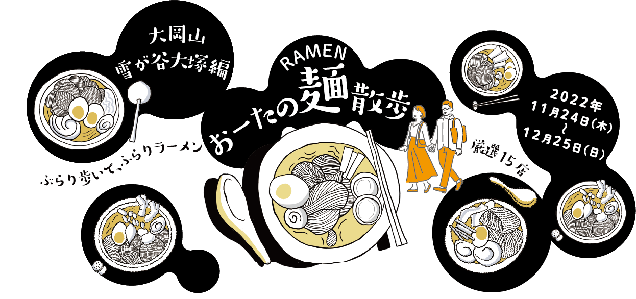 そんな中2022年1月に開催され好評を博した「おーたの麺散歩」が、参加店舗を増やしてリニューアル。区の内外から来訪者を集める人気のラーメン店を舞台に、回遊促進と経済活性化に資するスタンプラリーイベント「第2回 おーたの麺散歩」を開催します!
