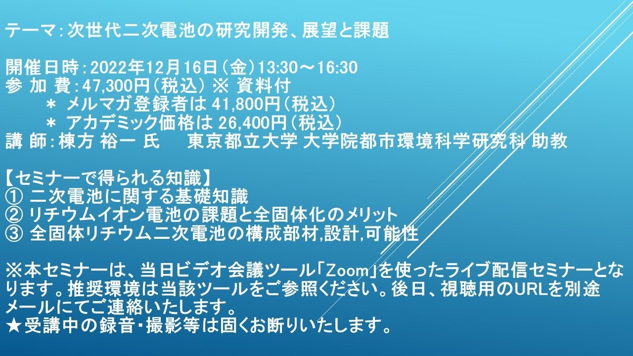 テーマ:次世代二次電池の研究開発、展望と課題