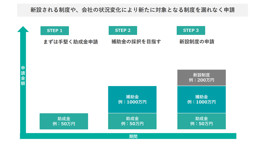また、年間を通じて、新設される制度や、会社・社会の状況変化により新たに対象となる制度を「もれなく」申請。