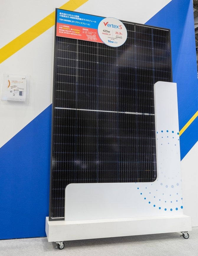 また、今回展示された新商品は、トリナ・ソーラーの最小モデルでは初となる両面発電型モジュールで、カーポートやソーラーシェアリングに最適なモジュールとなっています。
