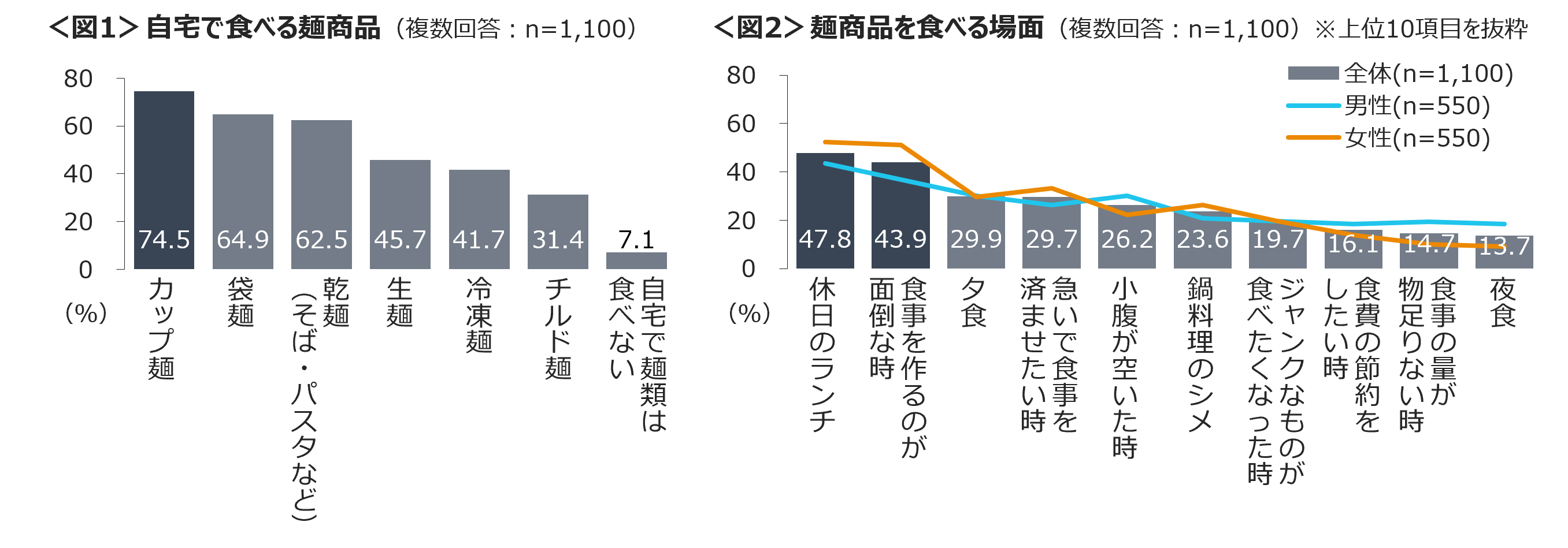 自宅で麺商品を食べる場面は、「休日のランチ」と「食事を作るのが面倒な時」が4割超 。<図2>