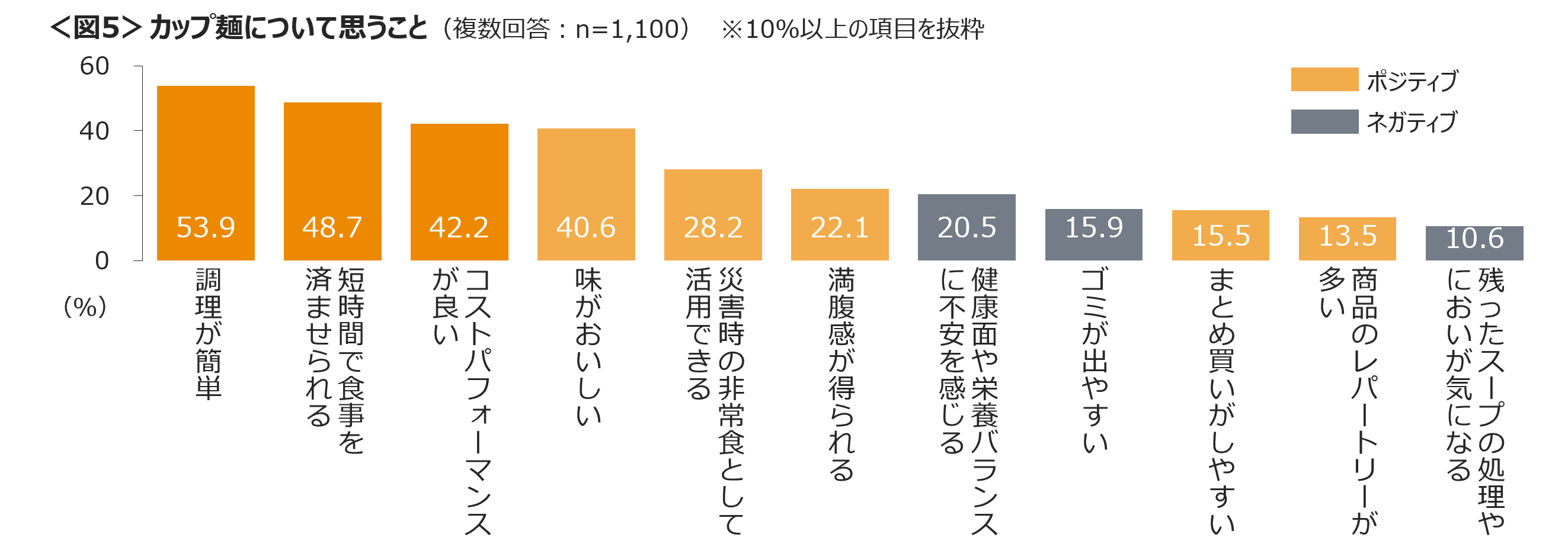 カップ麺はコストパフォーマンスとタイムパフォーマンスの良さが評価されている。 <図5>