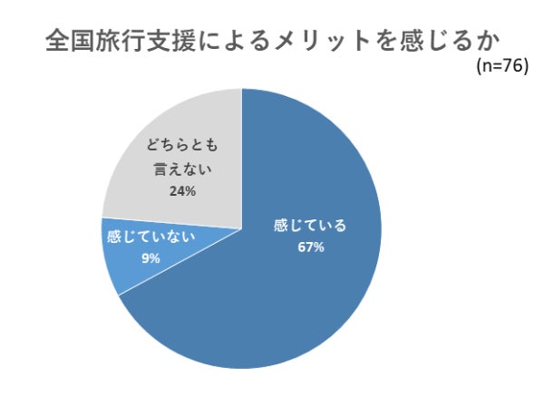 7割近くの施設がメリットを「感じている」と回答しており、全国旅行支援の効果が実感されています。