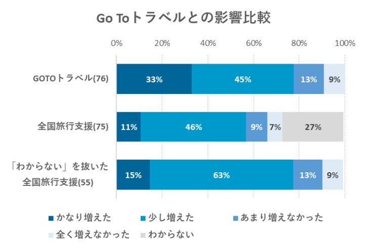 - Go To トラベル実施時と比較しても同程度かそれ以上の効果を実感
