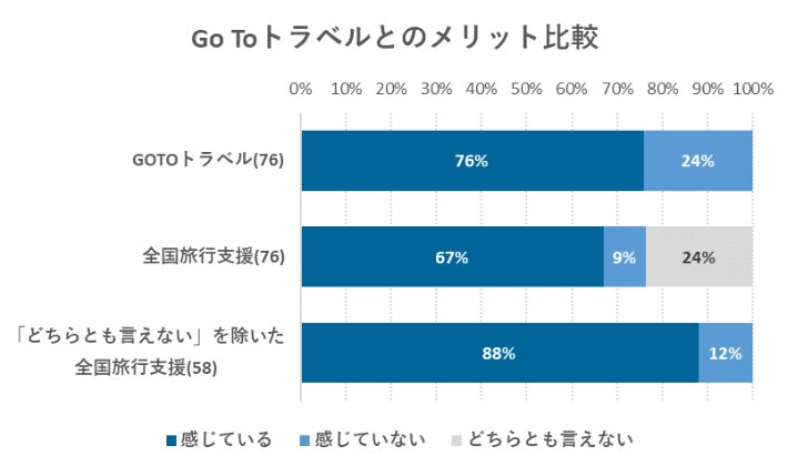 メリットの実感について、Go To トラベル実施時との比較したグラフがこちらです。