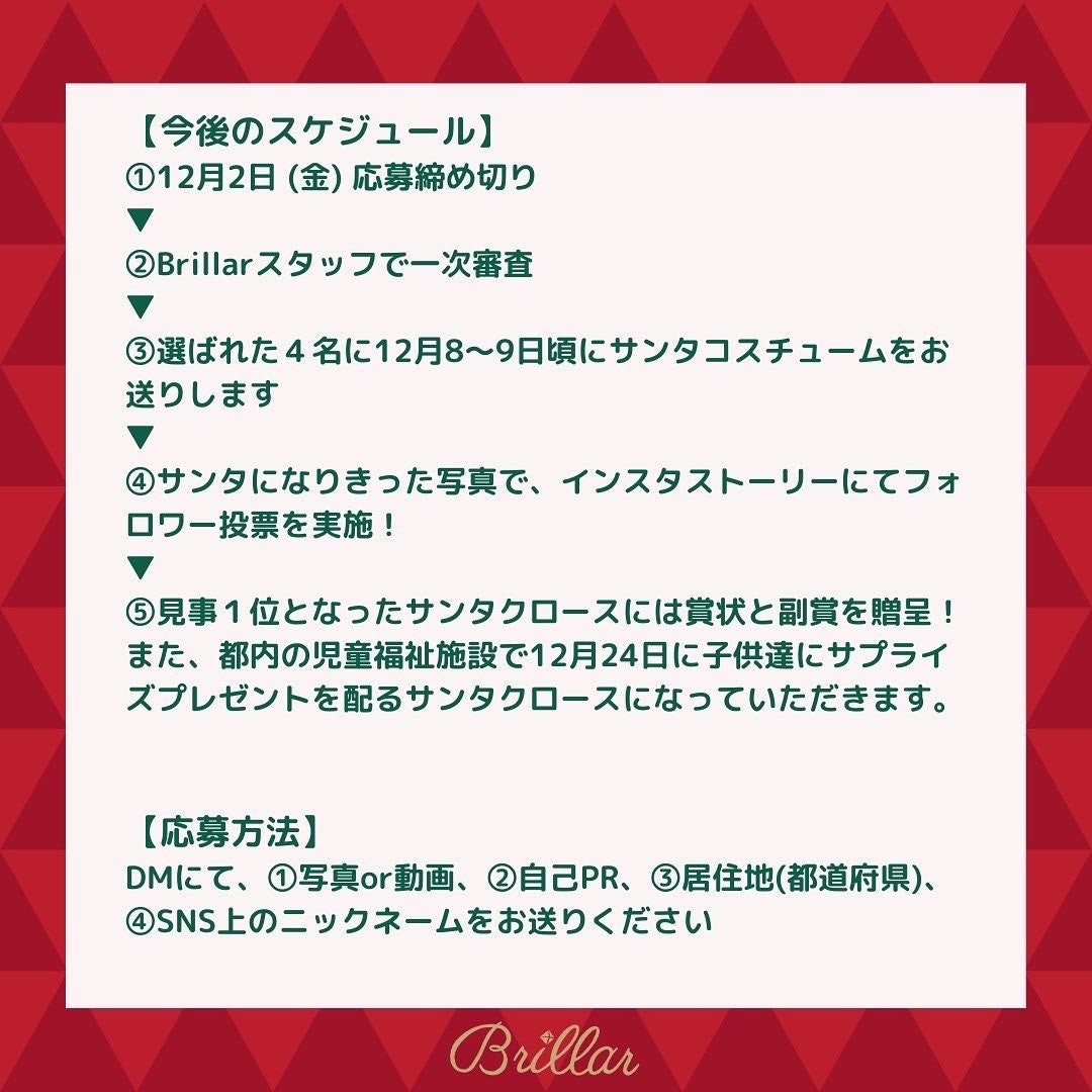 ・最終選考:ブリジャール公式インスタグラムアカウントに候補者がサンタクロースに扮した写真を掲載し、フォロワー投票により「最もサンタクロースにふさわしい人」を決定