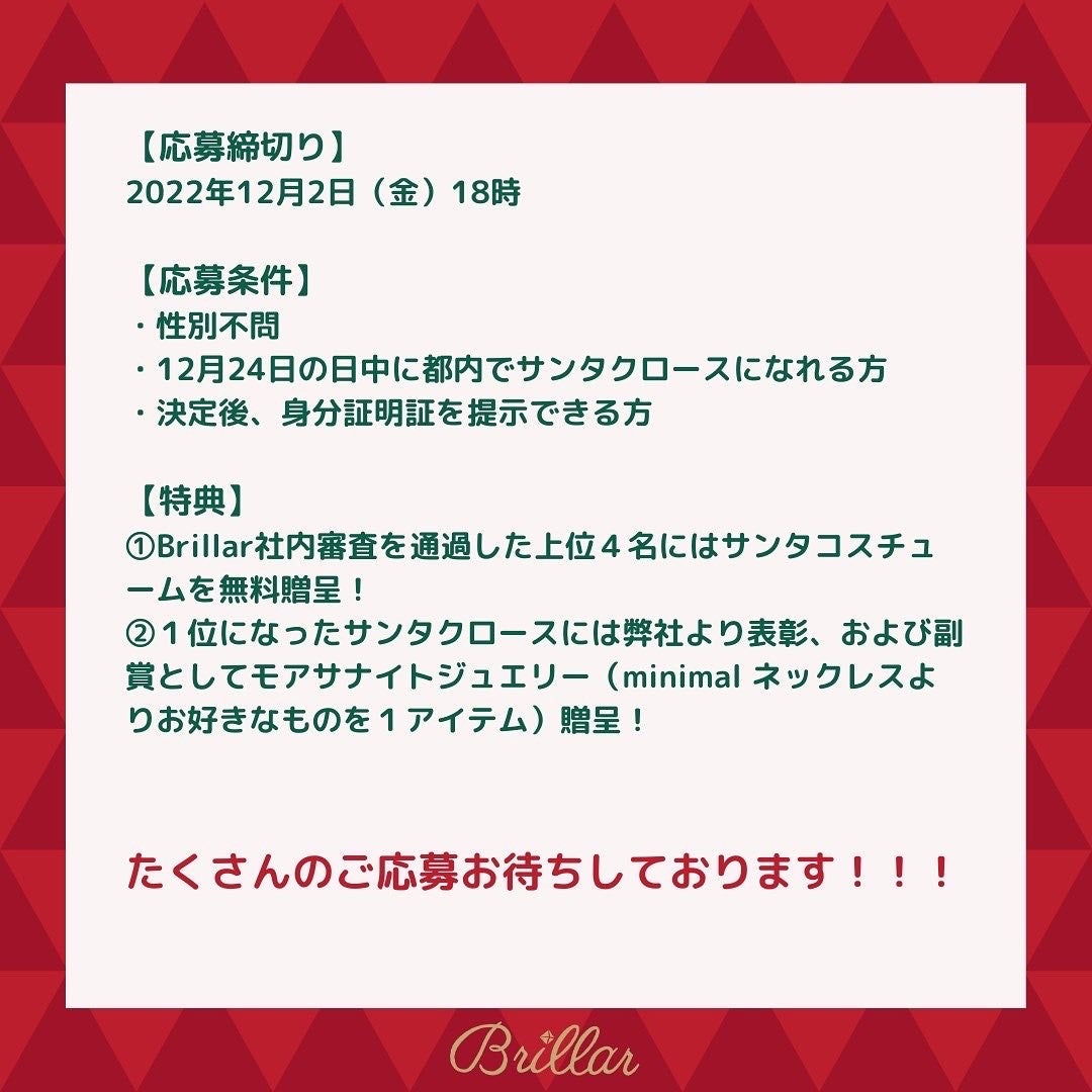 ・サンタクロース役に選出された1名には弊社より表彰、および副賞としてモアサナイトジュエリー(minimal collectionネックレスからお好きなものを1本)を贈呈いたします。