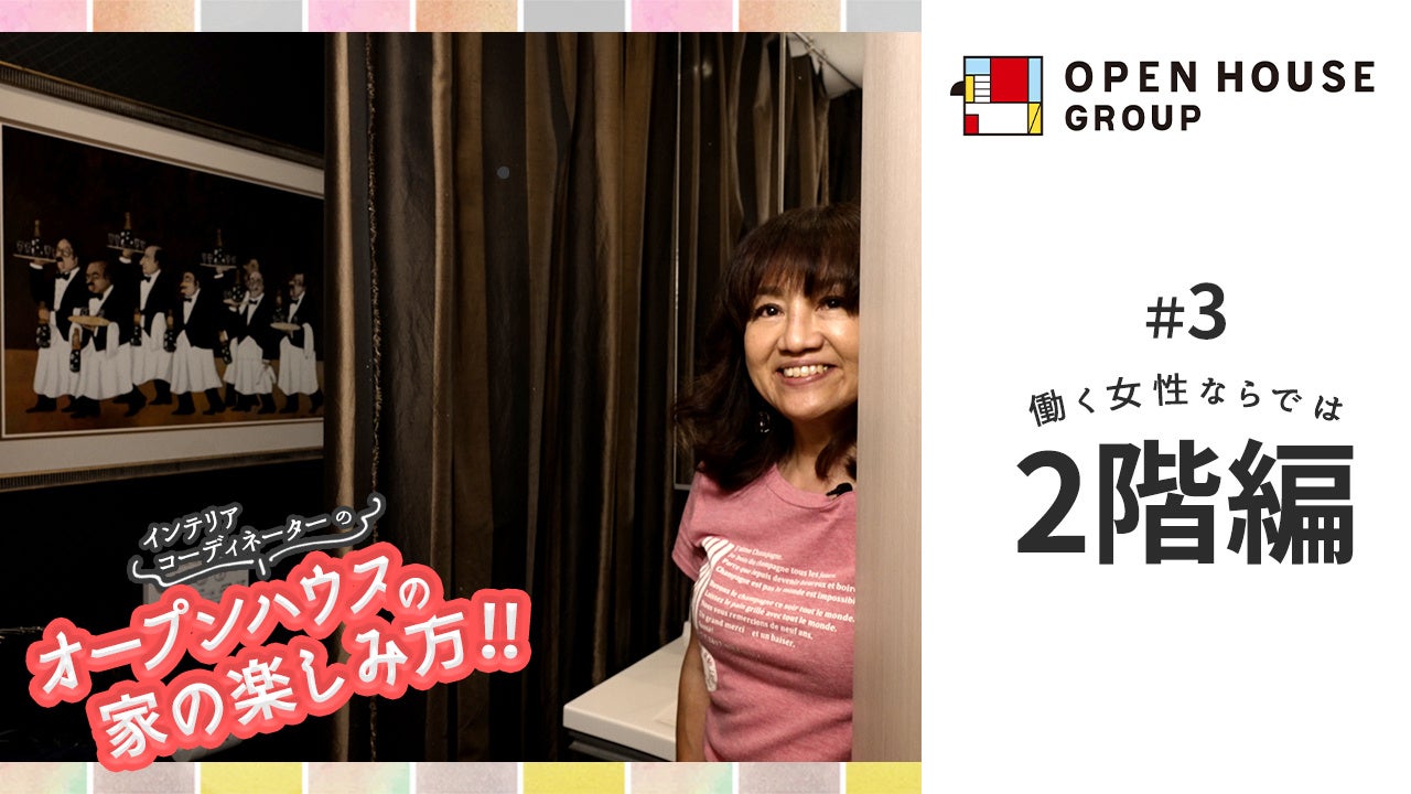第3講座「2階編」:働く女性のこだわりが詰まった2階のフロアで、もともとのリビングダイニングからガラッと変えた間取りや、より快適に過ごせるインテリアの仕掛けについてご紹介いただいております。オープンハウスでは、自分好みで予算にあった家造りが可能です。