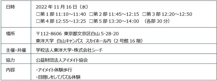 体験授業を企画・運営した学生からは、「初めて企画から実施までを運営することにとても不安でしたが、沢山の方のご協力により無事に終えられて良かったです。体験授業を通して、私たちが感じたことや伝えたいこと、またはそれ以上のことを参加者の方々に受け取ってもらえていたら嬉しいです。」とのコメントがある等、体験授業の企画・実施の過程で、受け身ではなく、まず自分自身が自発的に学び、どうしたら他者に伝えることができるのかを考える力、課題解決のために必要なことを見出し実行する力、目的を達成するために周囲を巻き込んで協力を得る力がついた様子が見られました。また、当社とアイメイト協会と協働することで社会課題の解決のためには、関与者が増えることの重要性、なぜ企業が社会貢献活動をするべきなのか、自分たちが社会とどのように関わっていけるのか等についての理解も深まりました。