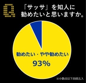 さらに「サッサ」を人に勧めたい・やや勧めたいと回答した人は93%とサッサ愛が止まらない!