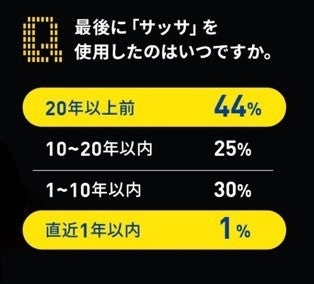 サッサ使用経験者の内、2人に1人(44%)が20年以上「サッサ」を使っていないことが発覚!