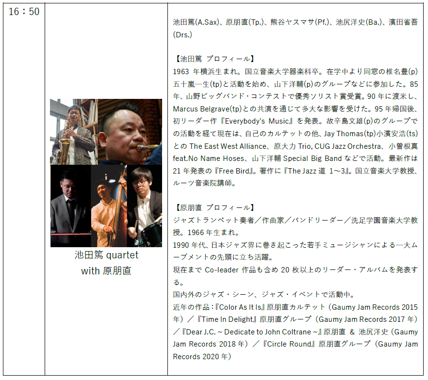 - 14:40~15:00……「ジャズのグローバリゼーション」
