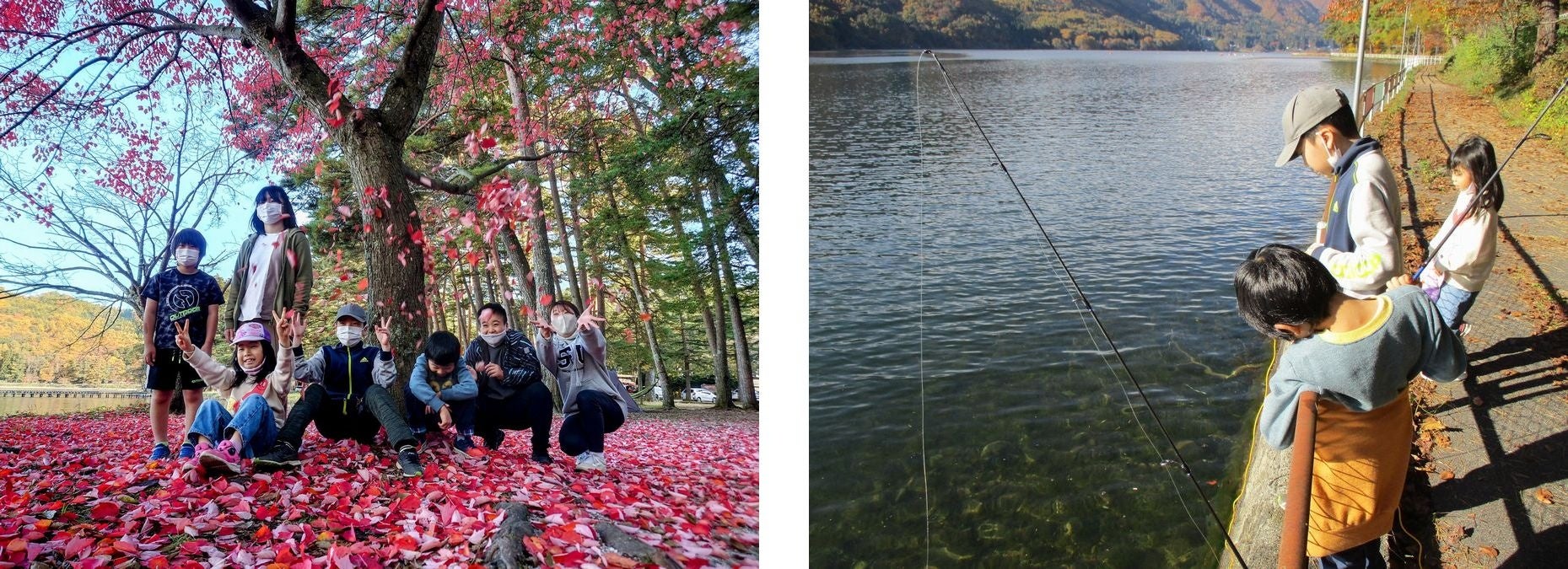 「コロナ禍や様々な事情で体験機会が少なくなった子どもたちに思い出をつくる」をテーマとし、「子ども第三の居場所b&g大町」に通う子どもたちが、木崎湖で秋を満喫しました。釣り体験では、外来種であるブルーギルを4匹吊り上げ、その他ボラ1匹の合計5匹を子どもたちが釣りました。昼食はバーベキューを行い、ホットサンドづくりも体験するなど、子どもたち自身で調理をしながら秋の味覚を味わいました。
