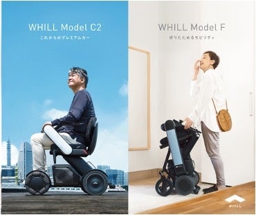 WHILLは免許不要で歩行領域を走行できる近距離モビリティです。Model C2は高いデザイン性と、5cmの段差乗り越え、後輪を軸にその場で一回転できる小回り能力、リアサスペンションを採用した滑らかな乗り心地などが特長です。Model Fは、高いデザイン性や操作性はそのままに、軽量化を実現した折りたためるモデルです。