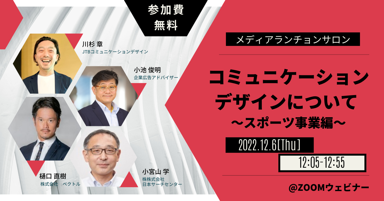 本ウェビナーは、講師の方々に「コミュニケーションデザイン ~スポーツ事業編~」について解説いただきます。