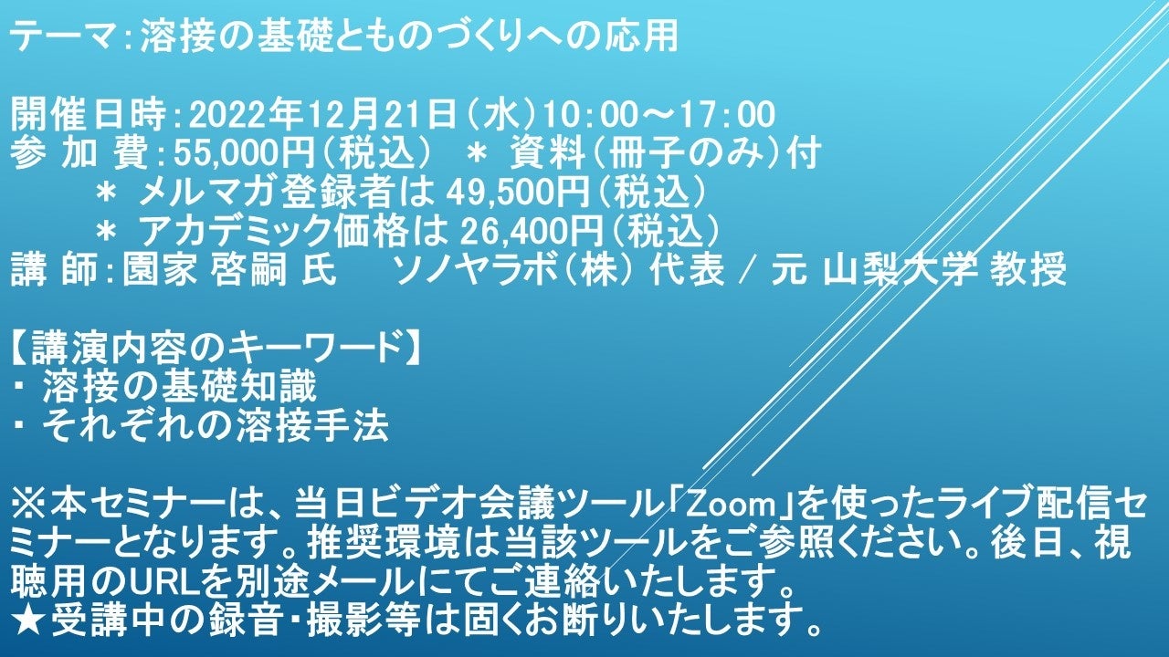 本セミナーでは接合の基礎から応用まで、プラントメーカーや材料メーカーの若手技術者、また現場の技術者が理解できるようにわかり易く説明します。本セミナーは、メーカーの現場の技術者や設計技師にも実務を行う上で大いに役立つと考えています。
