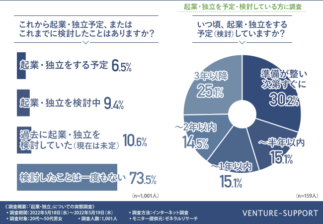 - その内3割が「準備が整い次第すぐに」起業・独立を検討していると回答