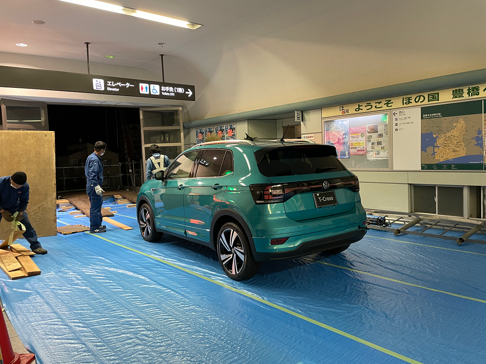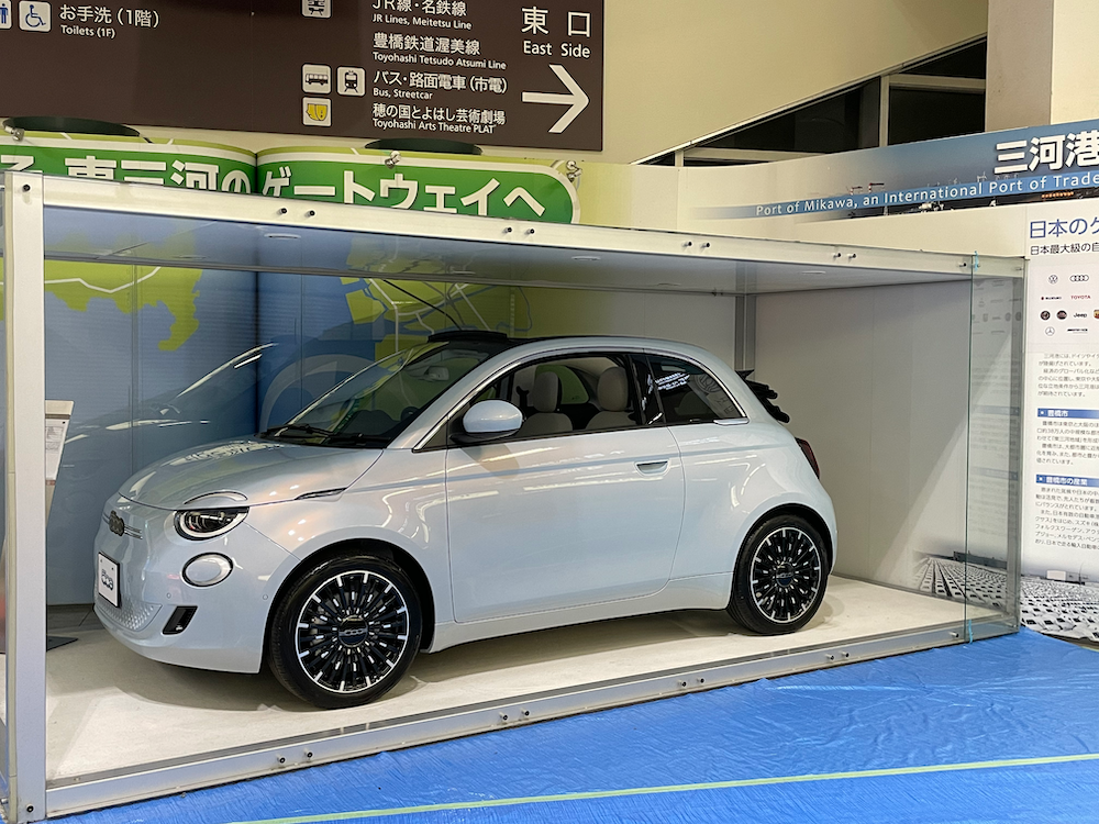 2022年11月下旬から産業プロモーションブースにおいて、三河港で陸揚げされている輸入車「フィアット 500e OPEN」を展示。今回は年1回、真夜中に行われる車両入れ替えの様子をお届けします。