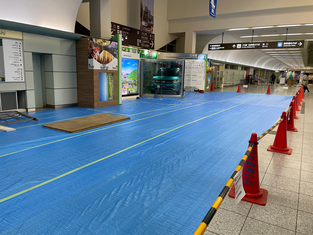 普段は新幹線やJR、名鉄を利用する人々でにぎわう駅構内もひっそりと静か。