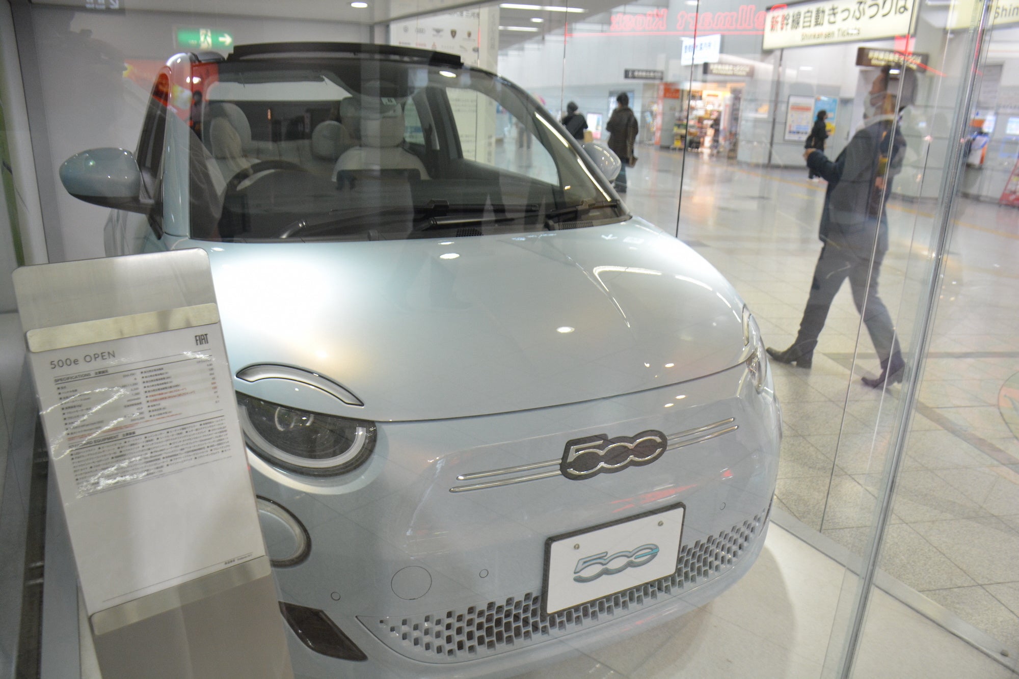 新しく展示する「フィアット 500e OPEN」は、フィアット初の電気自動車(EV)で、世界でも珍しい電気自動車のオープンカーです。