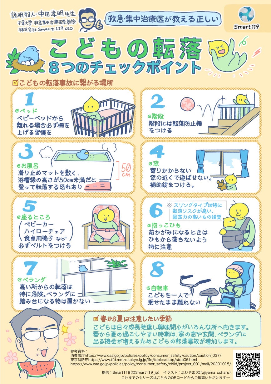 好奇心が旺盛なこどもは、あらゆることが興味の対象になります。春や初夏など窓を開ける機会が増える季節には活動がさらに活発になり、屋外への関心がより高まることから、ベランダに出たがったり窓から外を眺めたりしたがるようになります。こどもは「高さ」を認識する能力が未発達で危険を察知できないため、玄関やベランダ、窓辺などに、こどもが簡単によじ登れるような器具を置いていると、そこに登って窓から身を乗り出すなどして転落することがあります。救急集中治療医の視点から、こどもの転落を未然に防ぐ8つのポイントを解説します。