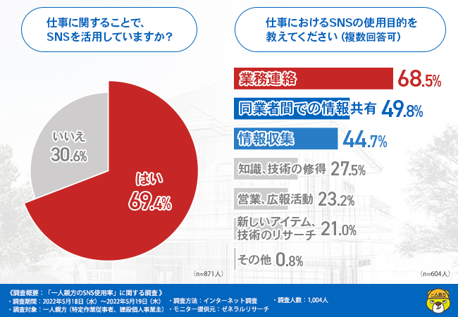 多くの一人親方がSNSを使用し、効率良く仕事に活用していることが分かりました。