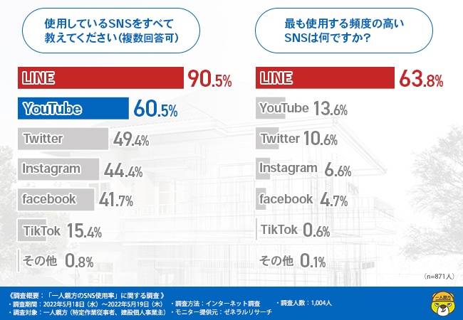 - 一人親方に利用されているSNS、一番人気は『LINE』!