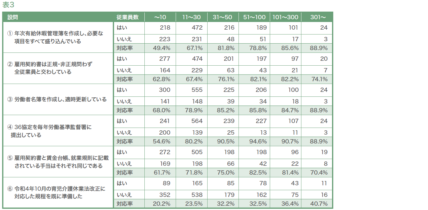 今回の結果から見てもわかる通り、中小・零細企業においても多くの企業が労務整備を進めていることがわかる。