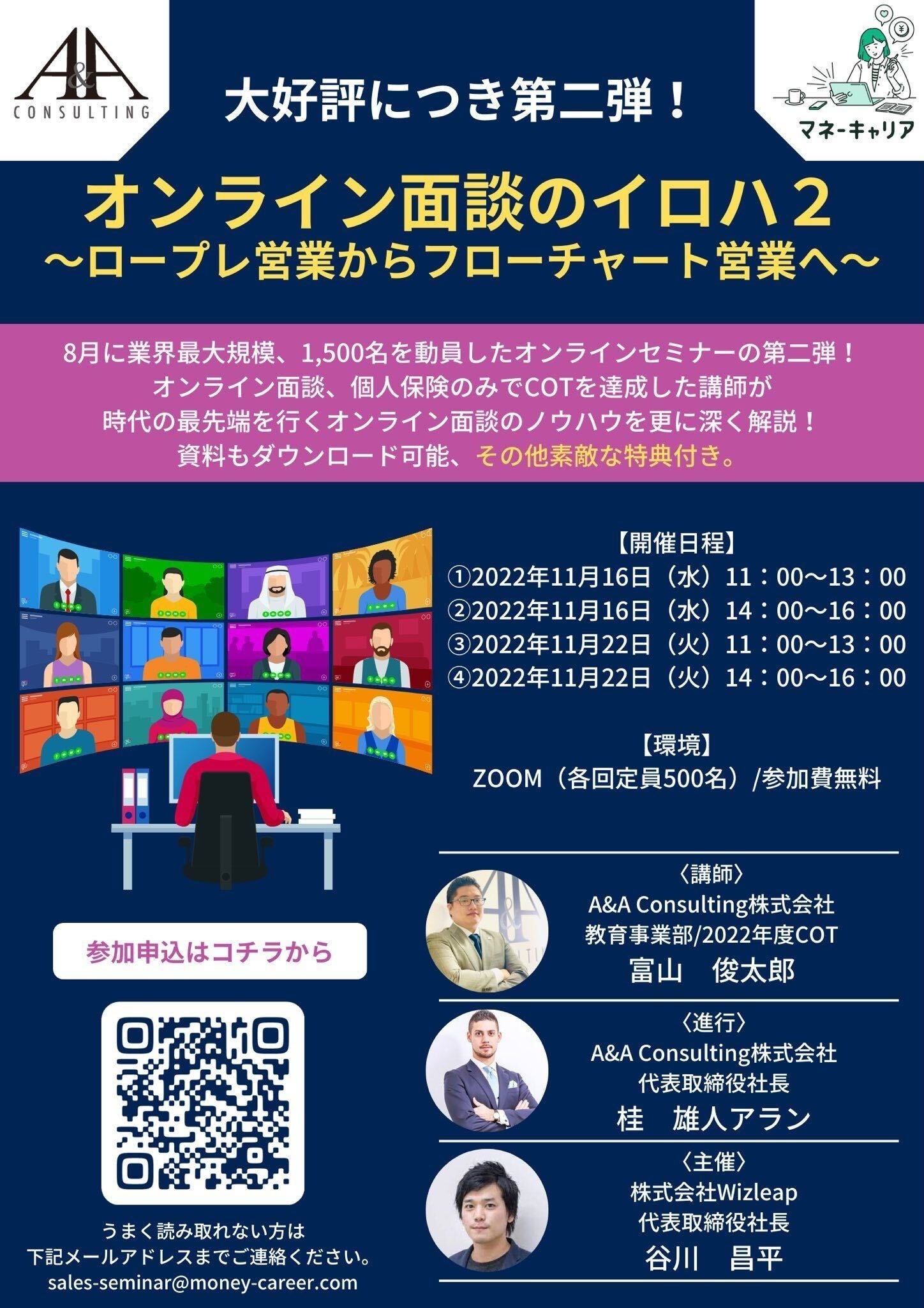 オンライン面談、個人保険のみでCOTを達成した講師が、時代最先端を行くオンライン面談のノウハウを更に深く解説するセミナーを開催いたしました。