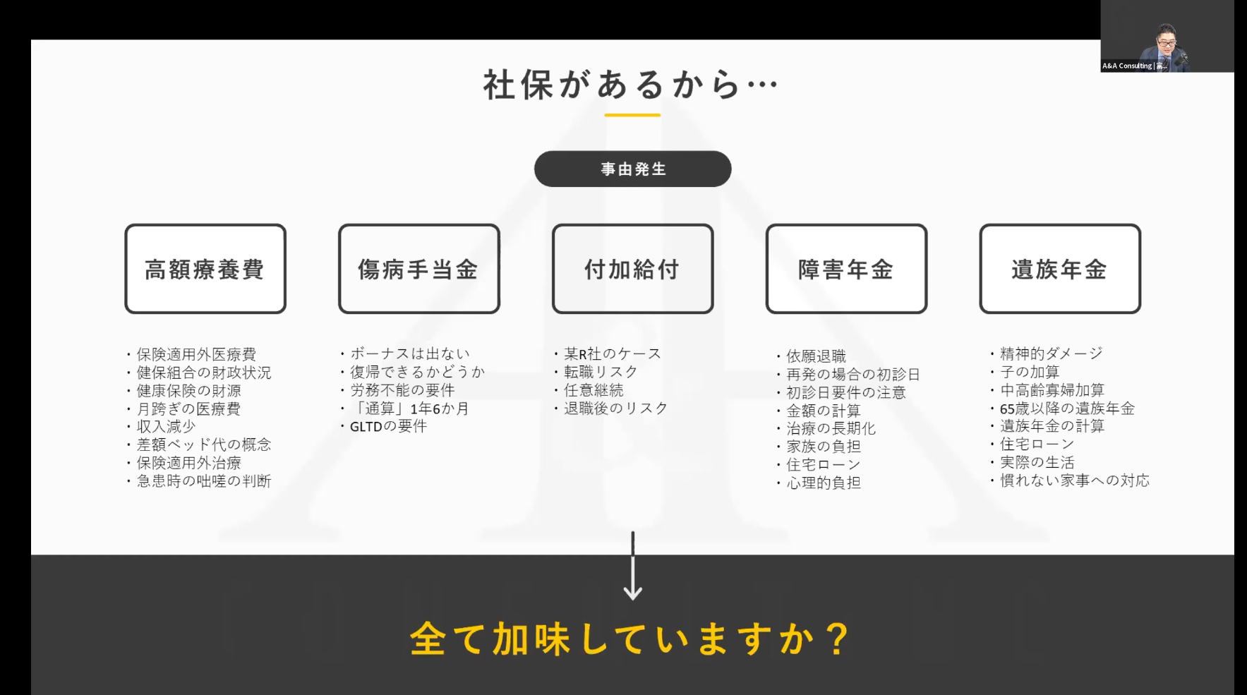 - 死亡保険とがん保険の実際のロープレ形式でお話しいただいた部分は、まさに的確明確で非常にわかりやすかったです!