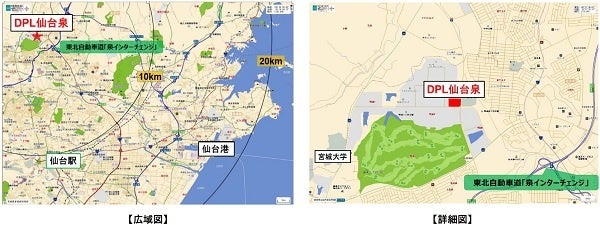 今回開発する「DPL仙台泉」は、工業団地「泉パークタウンインダストリアルパーク」内に位置することに加え、東北自動車道「泉インターチェンジ」から約3km、「仙台駅」から約10km、「仙台港」から約20kmの場所に立地しているため、仙台市街地への近距離配送や東北地方の広域輸送のハブ拠点としても機能します。