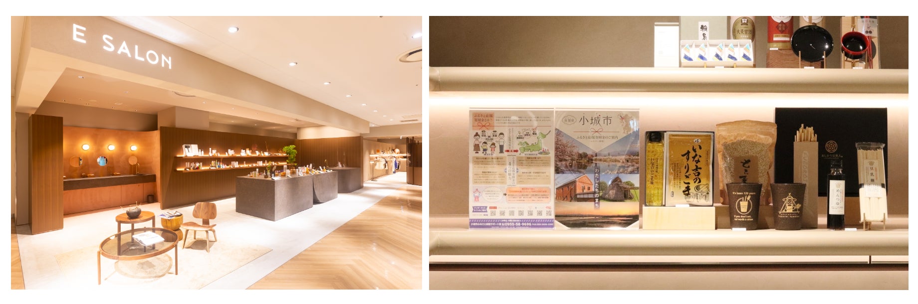 加えて、E SALONが実際に店舗でご紹介を行っている自治体、佐賀県小城市が返礼品としてお届けしている商品を展示し、お客様ご自身にお手に取ってご覧いただけるようなスペースもご用意しております。