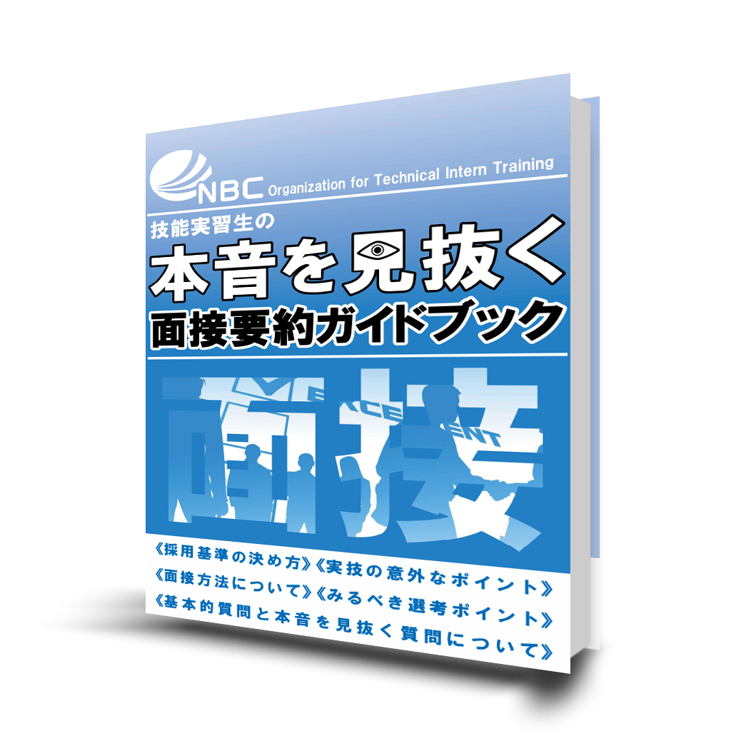 中には、技能実習生の本当の性格を知るための、意外なポイントも載せております。ぜひ技能実習生の面接の前には、こちらをお手元においてご活用いただければと思います。