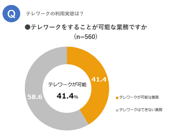 ・「テレワークが可能な業務」と回答した人の割合は約4割強。
