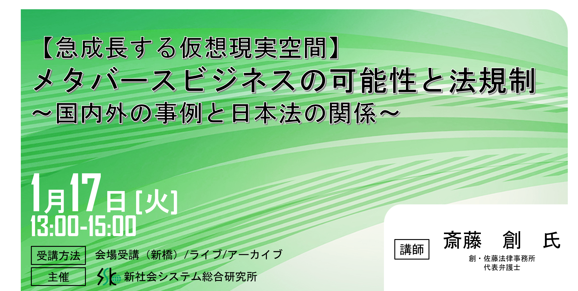 本セミナーでは、メタバースの概要、国内外の事例、これらを取り巻く法規制など、事業者がメタバースに取り組むに際して参考となると思われる情報を解説します。
