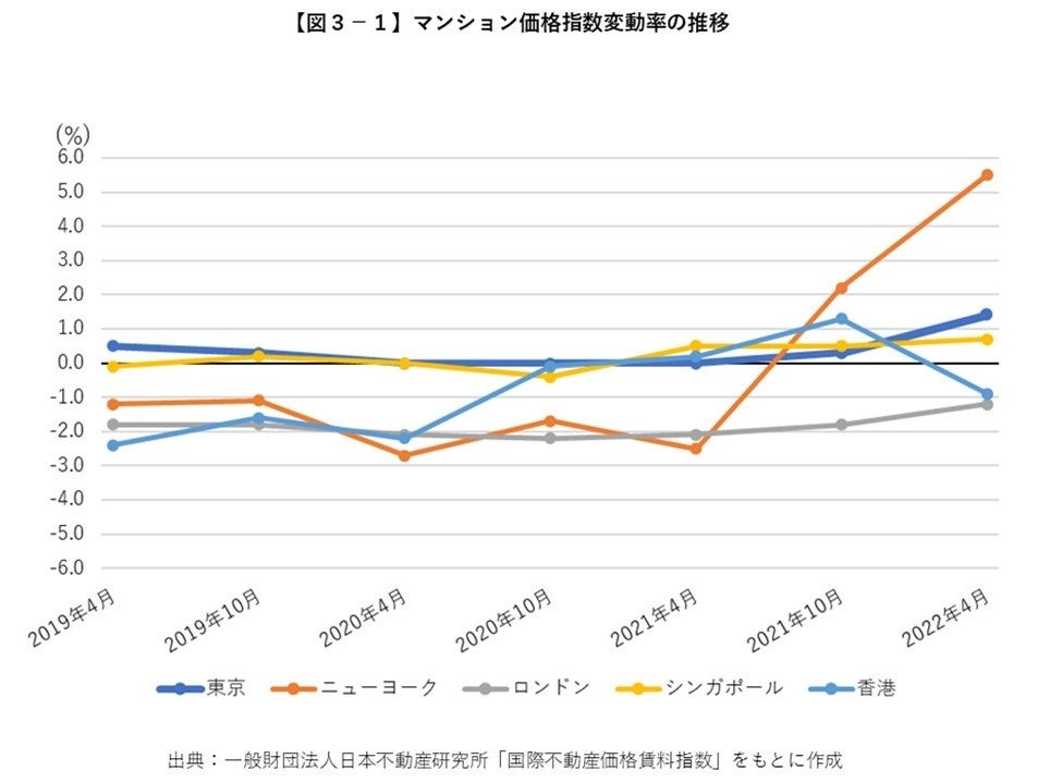 マンション市場でも、コロナ禍の被害が甚大であった「ニューヨーク」「ロンドン」では、都市封鎖など社会経済活動の自粛が影響し、マンション価格の下落基調がしばらく続きました【図3-1、図3-2】 。