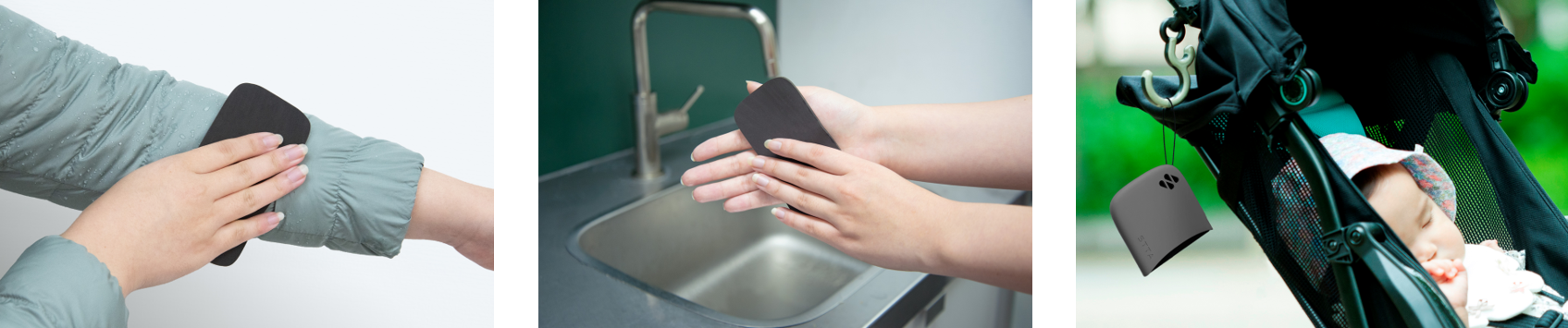 鞄の持ち手などに付けて携帯可能。突発的なシーンですぐに取り出すことができ、使用後は気兼ねなくしまえます。